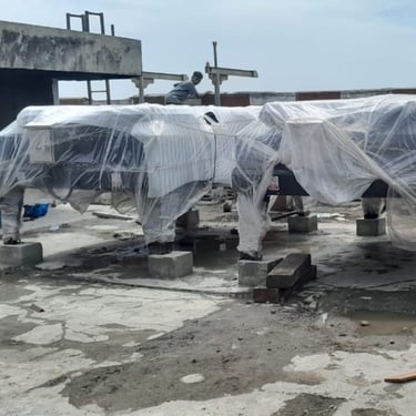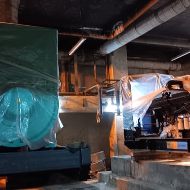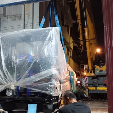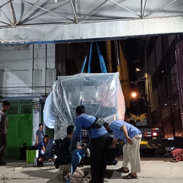 For the Novotel Hotel Medan project, which was still under construction at the time, we were assigned to supply three 1000 kVA Cummins open-type generator sets, along with three remote radiator units. Our scope of work included transporting all six units from our warehouse to the project site, as well as offloading and positioning them at the designated locations. As the site was still in the construction phase, all generator sets and remote radiators were carefully wrapped in protective plastic sheets to ensure the equipment remained clean and well-protected prior to installation. This project demonstrates our capability in handling large-scale equipment logistics with proper care and coordination.